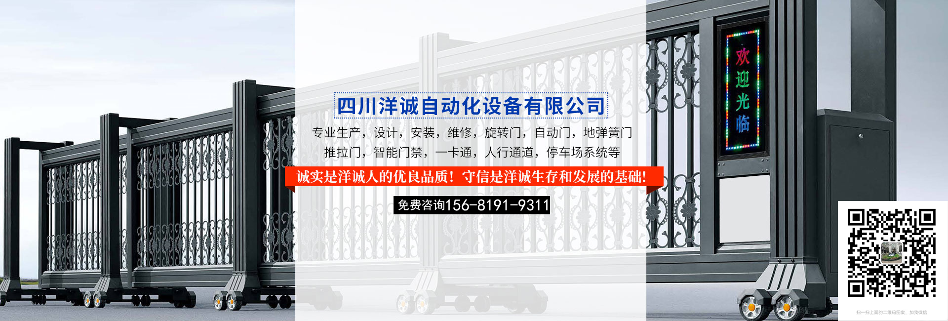 四川洋诚自动化设备有限公司是一家专业生产,设计,安装,维修,旋转门,自动门,地弹簧门,推拉门,智能门禁,一卡通,人行通道,停车场系统等公司,公司在成都拥有生产基地 。自公司驻扎成都以...